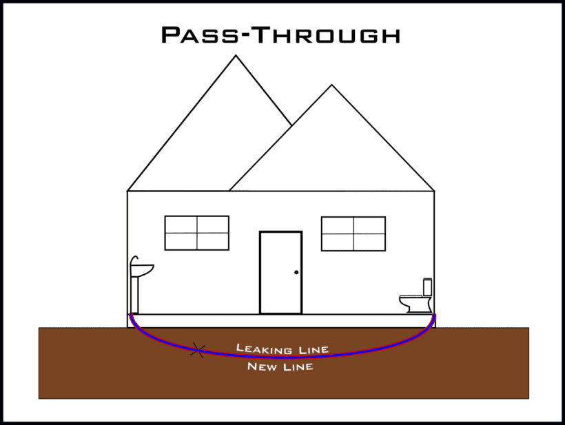 One oft-overlooked method of repairing a slab leak is called pass-through. It is very similar to the reroute approach. It still eliminates the entire leaking line. Once “Point A” and “Point B” of the leaking line are discovered a new, smaller line can sometimes be run through the old copper line by using it as a sleeve. Once the line is passed through from end to end, it can be reconnected and the water restored.