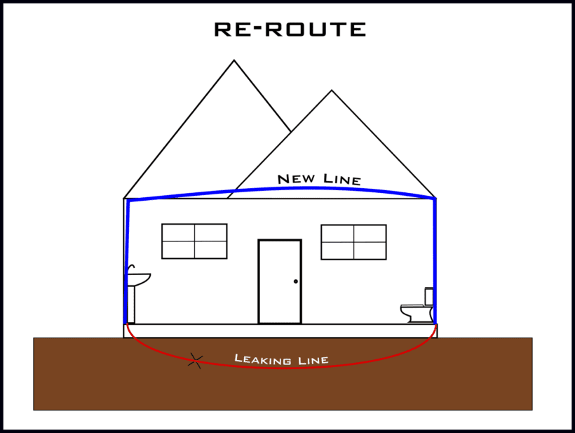 Re-routing is a very good option because it eliminates the entire line and prevents potential leaks in the future. It does usually require cutting open the sheetrock wall in a few places, so that is one of the disadvantages. Overall, it is generally considered the best method of repairing a slab leak where practical (especially if the house is one-story).