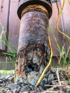 Unfortunately, it isn’t a matter of “if” these steel yard lines will have issues. It’s a matter of “when”. Even though they carry gas and not water, the moisture of the soil will eventually rust away these lines and cause leaks. When the gas line starts to leak underground, it can result in a dead patch of grass above the leak, a strong sulfur smell in the area above the leak, and a high gas bill. Due to the nature of these types of failures, the entire line is typically replaced at this time instead of trying to repair a single spot.
